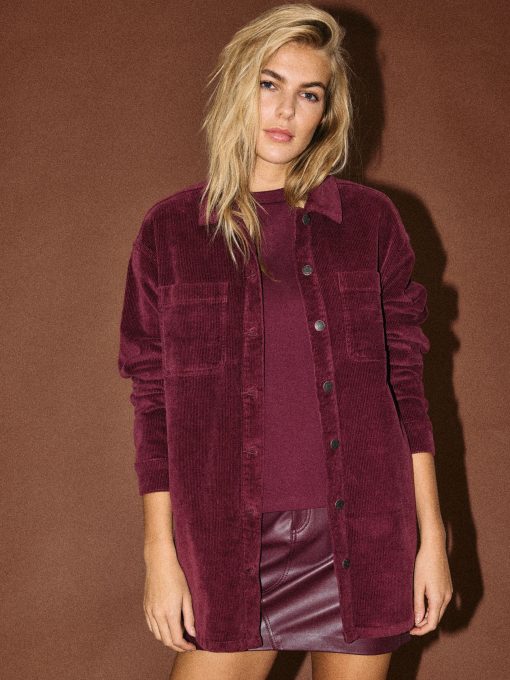 – Long sleeved corduroy shacket- Spread collar- Dropped shoulders- Buttoned cuffs- Patch pockets at chest- Button-up front- Curved hem- Oversized fit- Model is wearing size M