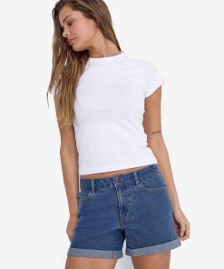 – Mid waist denim shorts- Belt loops- 5-pocket design- Fold-up cuffs- Regular fit