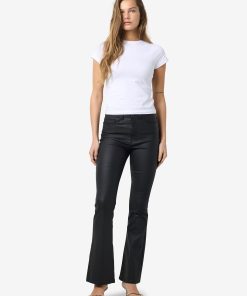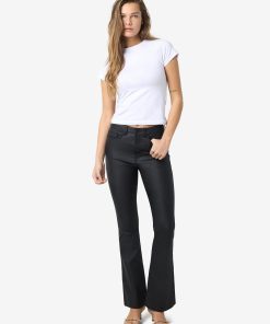 – Coated trousers – High waisted- Flared leg- Belt loops at waist – Zipper and single button fastening at front- Five pockets – Skinny fit